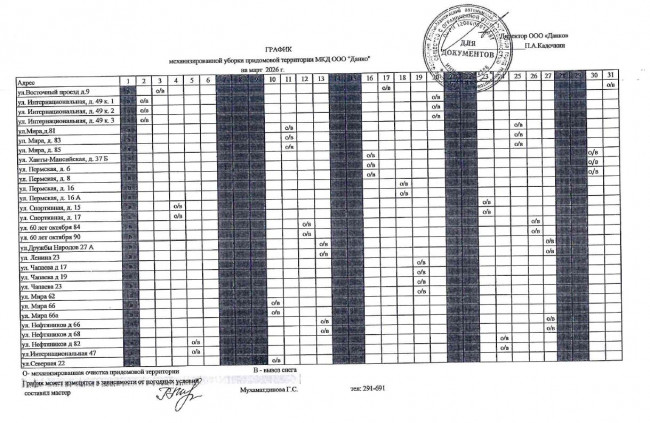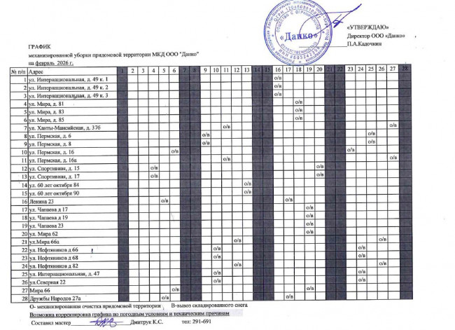 График очистки придомовых территорий домов от снега. Возможна корректировка графика по погодным условиям и техническим причинам.